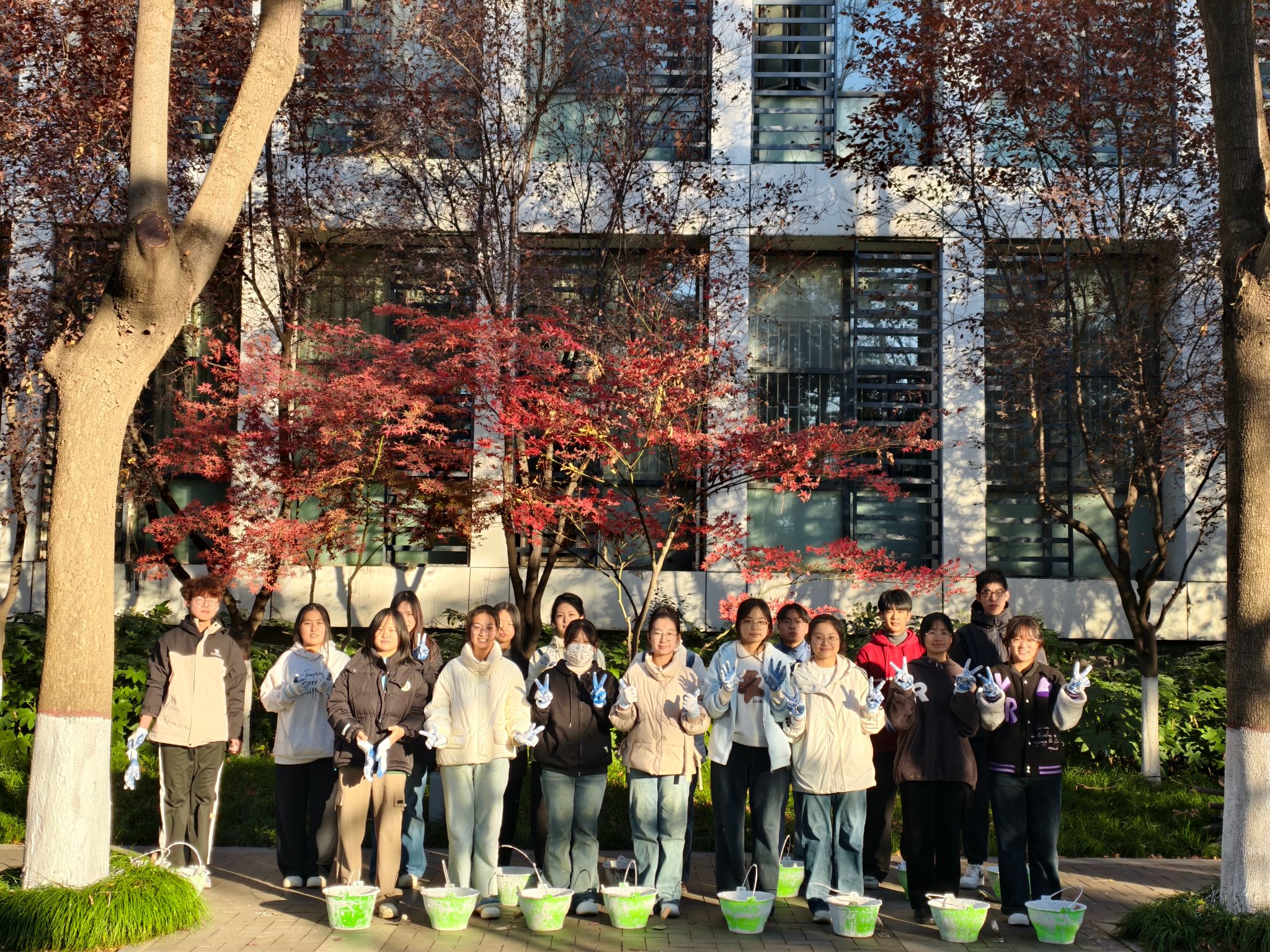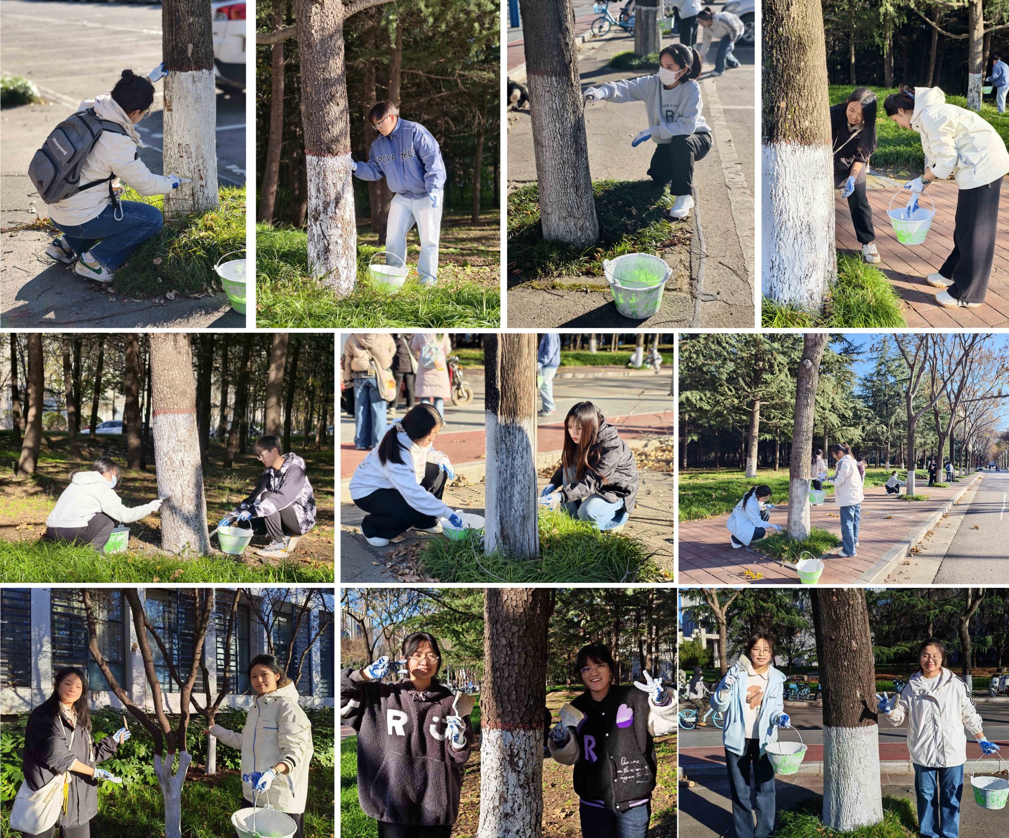 11月18日,“后勤育人小课堂”第5期在长安校区开课。本期课程以“校园树木的‘冬日守护者’——树木涂白技能与实践”为主题。吸引31名同学踊跃报名、积极参与,并亲手为上林大道两侧的树木披上“防护外衣”。