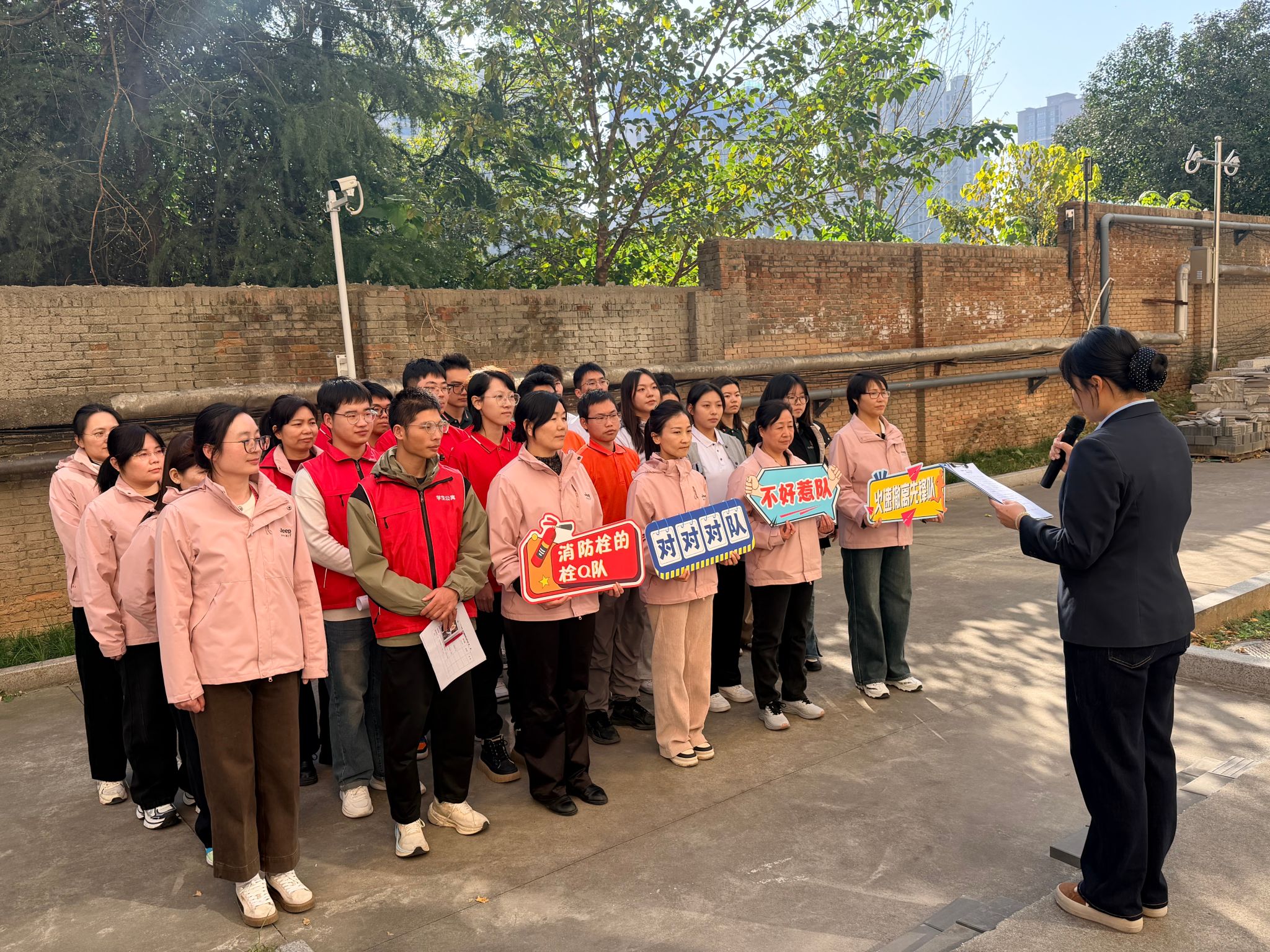 学生公寓服务中心通过 “手把手教学 + 模拟实操”的 模式,开展灭火器、消防栓、消防水带、高压水枪等常用器材的规范操作培训,并结合高校真实火灾案例,指导员工正确佩戴微型消防站防护装置,熟练掌握火警手报操作流程。