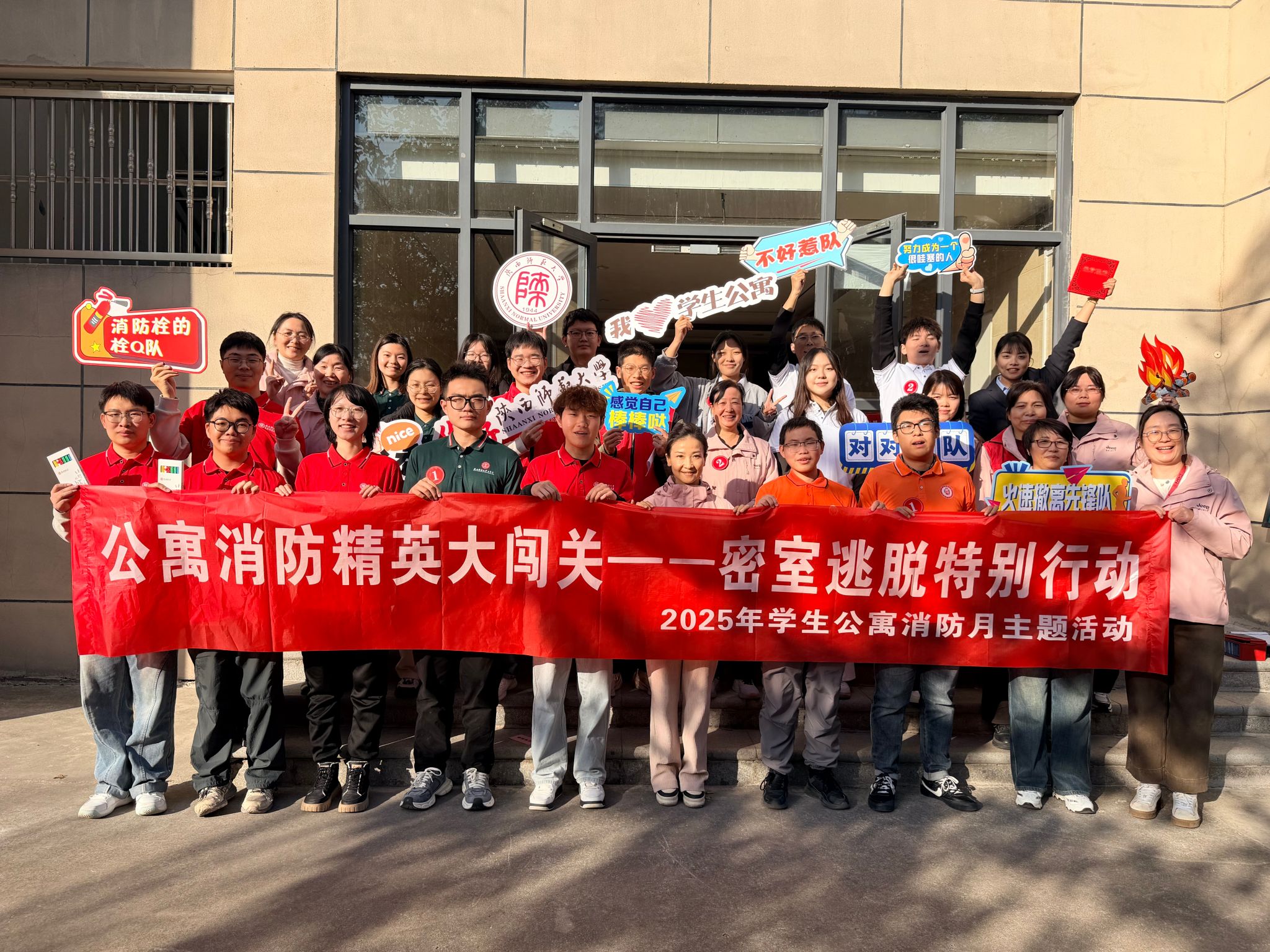 学生公寓服务中心通过主题板报、横幅悬挂、安全警示片观看等形式,营造浓厚消防宣传氛围;以 “公寓小姐姐讲解” 、“韩妈课堂”为等生动形式,让学生了解公寓楼消防器材的摆放位置、疏散通道及逃生路线,普及宿舍安全用电常识,强化 “火灾隐患不容小觑” 的防范意识。同时,联合各学院开展消防主题活动,吸引学生党员代表、学生骨干、宿舍长等积极参与,通过 “以点带面、辐射全员” 的方式,实现雁塔校区住宿学院全面覆盖,切实提升学生消防安全意识和实践能力。