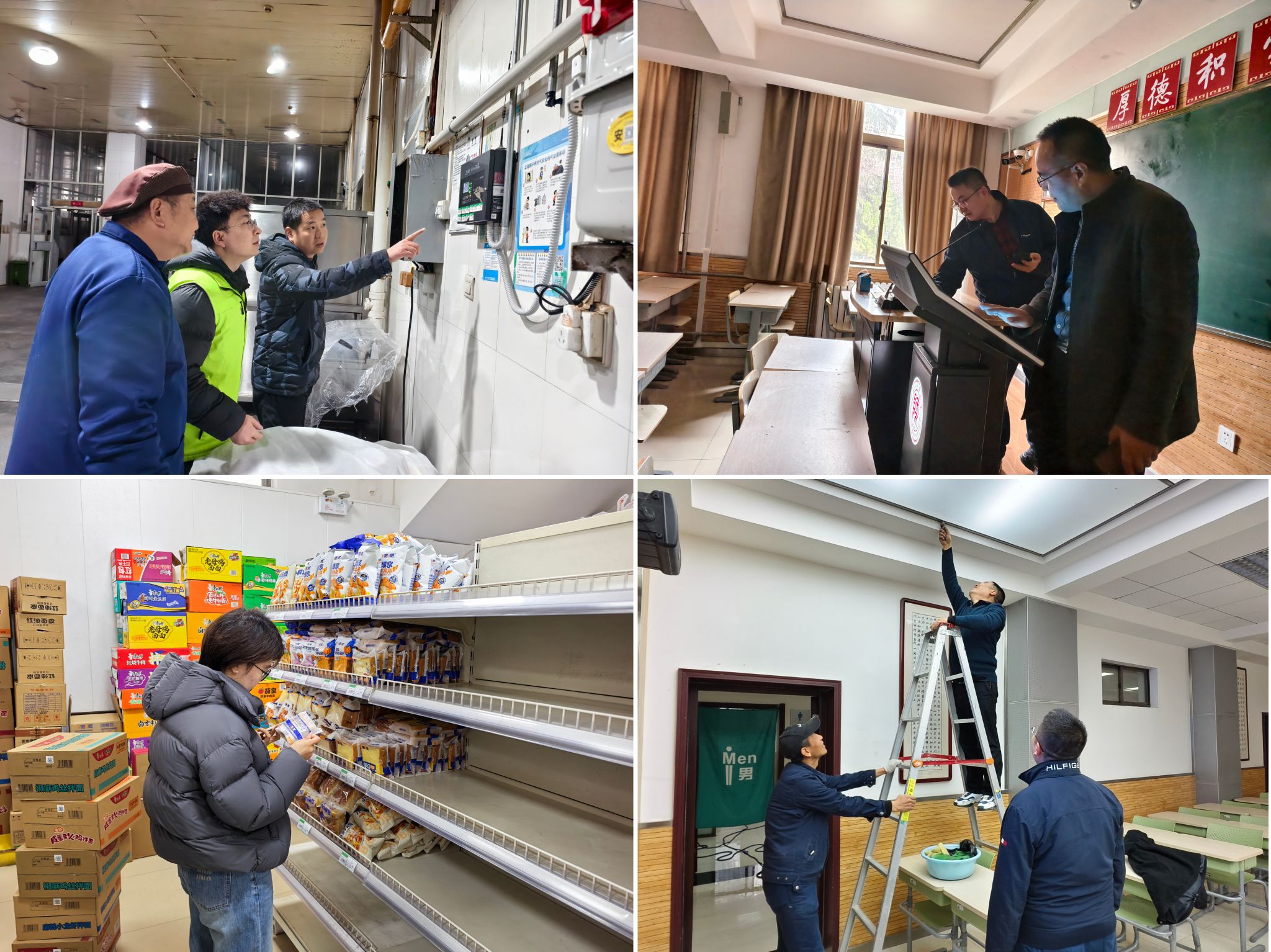 为全方位筑牢后勤服务安全防线,集团服务质量与管控部在两校区各个服务场所进行全面细致的检查,包括学生食堂、学生公寓、校园超市、教学楼等,确保学生食堂干净整洁,各类食材储备充足,餐具均按要求完成清洗与消毒,燃气设备运行正常,在架商品生产日期符合要求……
