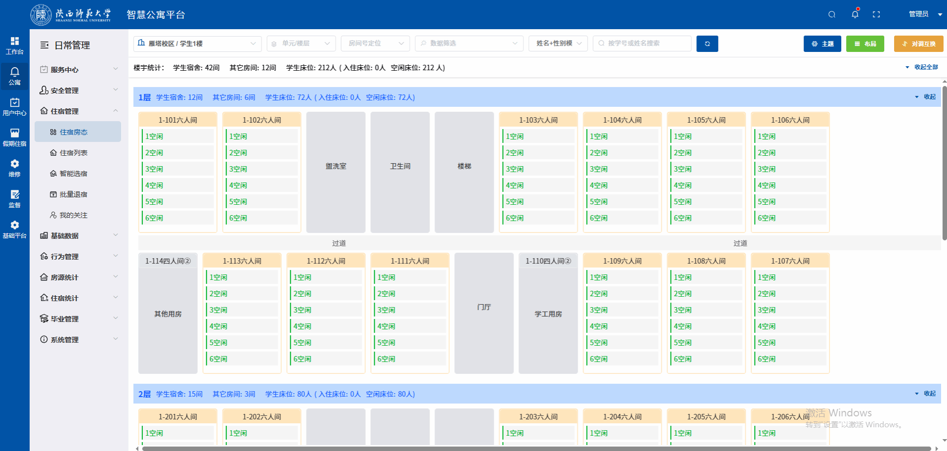 信息化研发中心有序推进学生公寓系统5.0版和后勤服务一网通办的升级改造工作,做好各业务系统服务器巡查、数据库巡查、内存清理,确保系统正常使用。