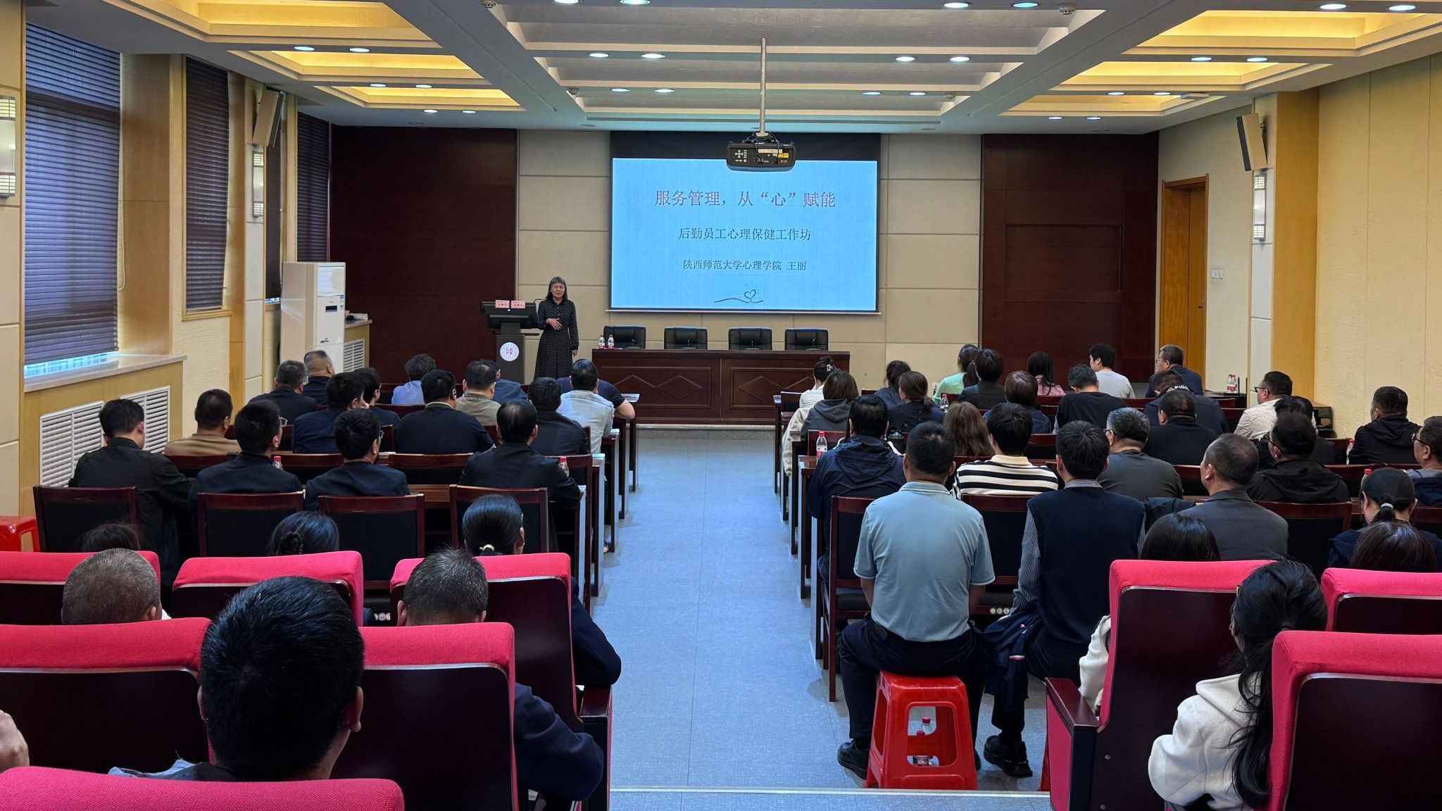 为进一步普及心理健康知识,增强员工心理安全防范意识,提升危机识别与干预能力,后勤学校于4月16日举办了“心理健康知识”专题培训,培训邀请了我校心理学院王丽教授授课。后勤党委书记辛峰,后勤党委副书记、纪委书记肖新军,后勤服务集团全体中层、基层管理人员及员工代表共110余人参加培训,培训会由肖新军主持。